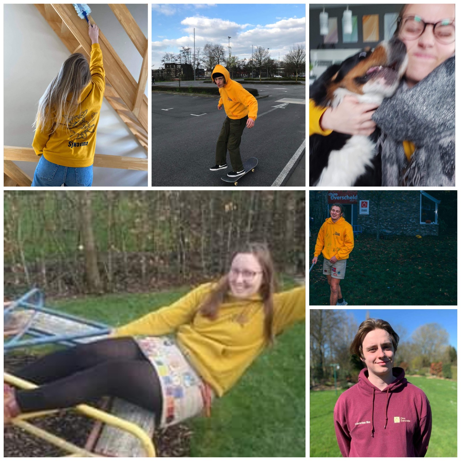 Vandaag tijd voor enkele sportievelingen met koersbroekskes 🚴🏼♂️ en skateboards 🛹. En anderen die zich rustig bezighielden met een puzzel 🧩, een ritje op de draaimolen, een kampje bouwen, een knuffelsessie met de hond 🐶 of de lenteschoonmaak 🧹.